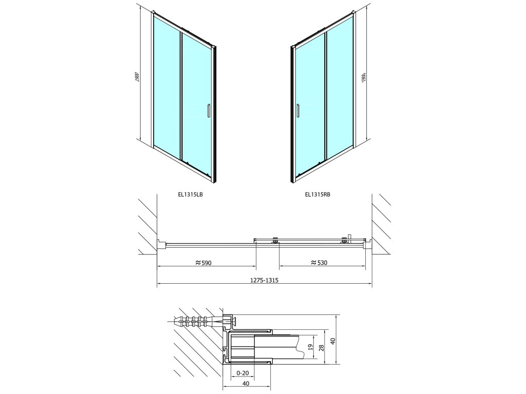 - Boční stěnu lze ke všem typům dveří instalovat z levé i pravé strany, bez ohledu na stranu otevírání dveří