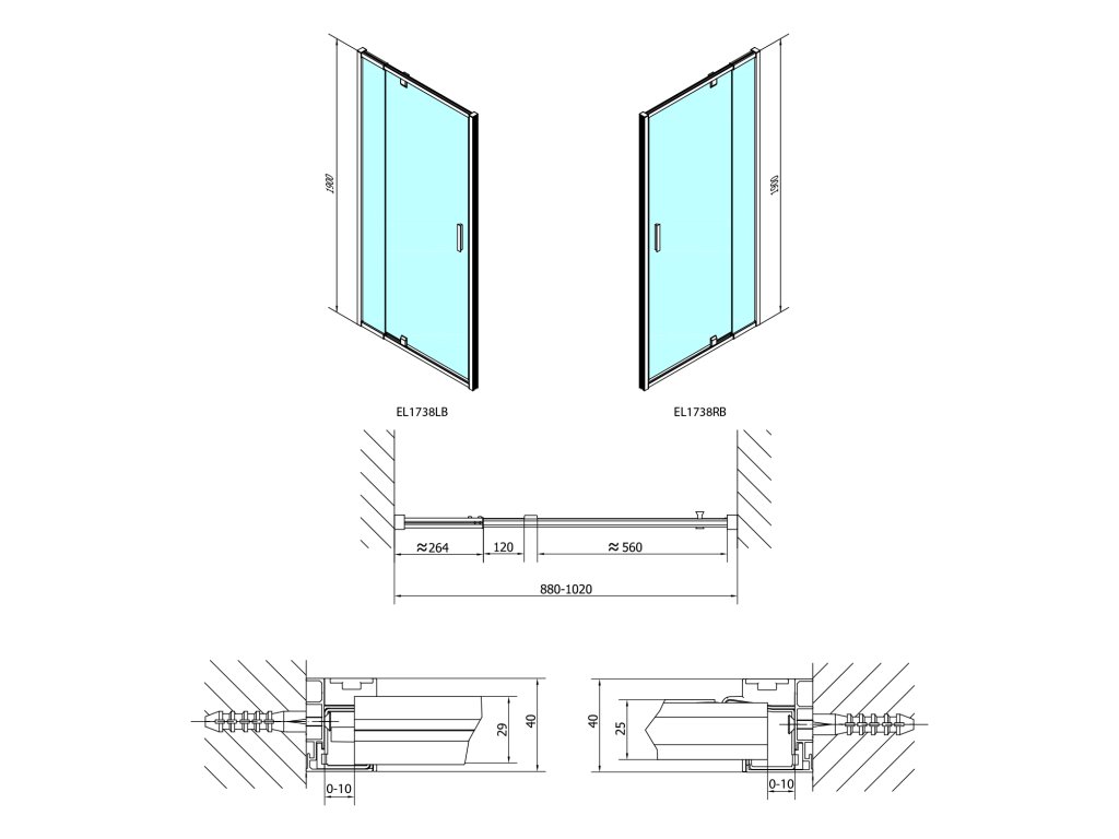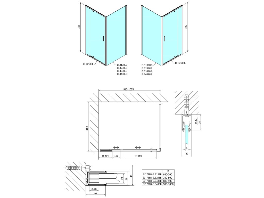 • Instalační rozměr dveří do niky lze díky rozšiřovacímu profilu EL825 zvětšit o 25 mm na každou stranu, celkem o 50 mm