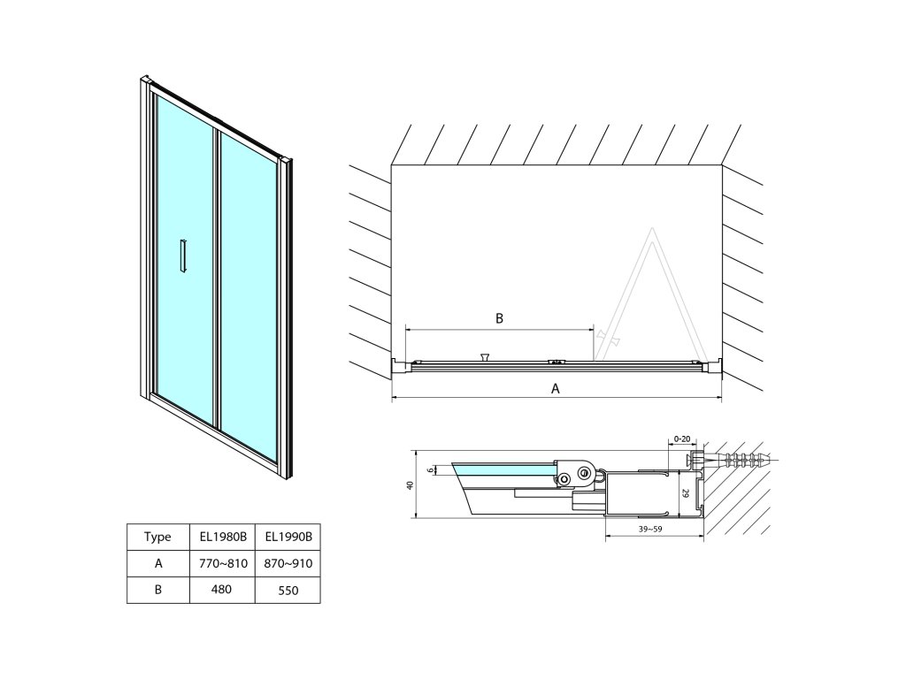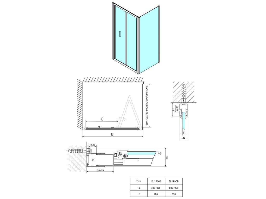 • Instalační rozměr dveří do niky lze díky rozšiřovacímu profilu EL825 zvětšit o 25 mm na každou stranu, celkem o 50 mm