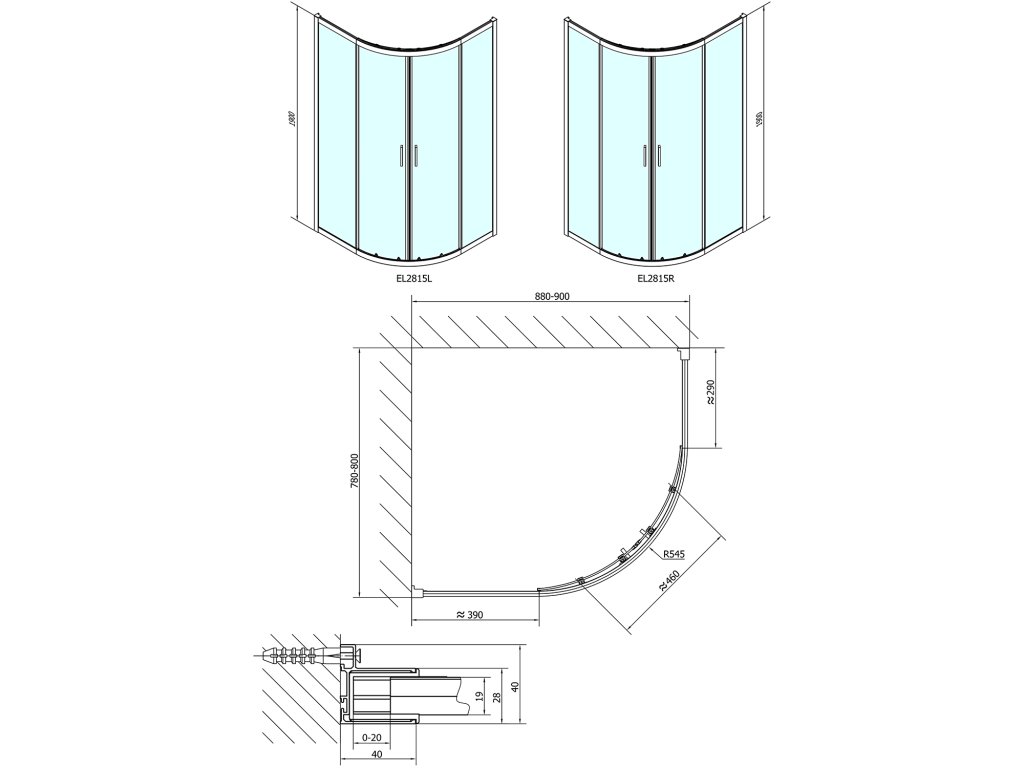 Polysan EASY čtvrtkruhová sprchová zástěna 900x800mm, L/R, čiré sklo EL2815