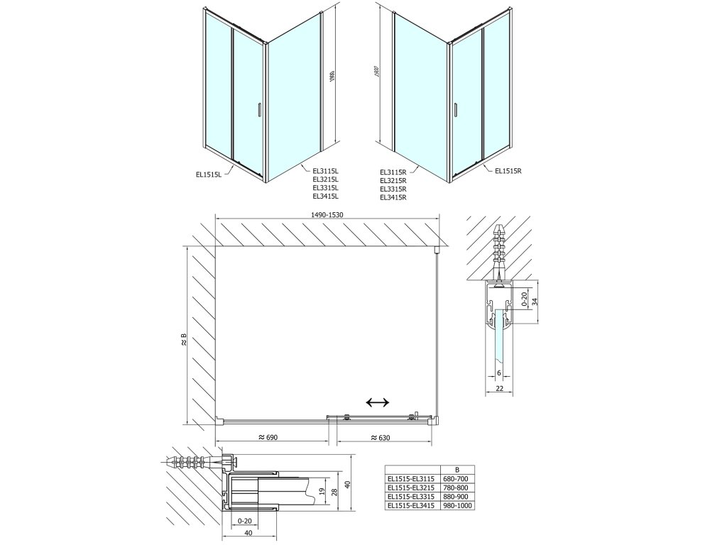 - Boční stěnu lze ke všem typům dveří instalovat z levé i pravé strany, bez ohledu na stranu otevírání dveří