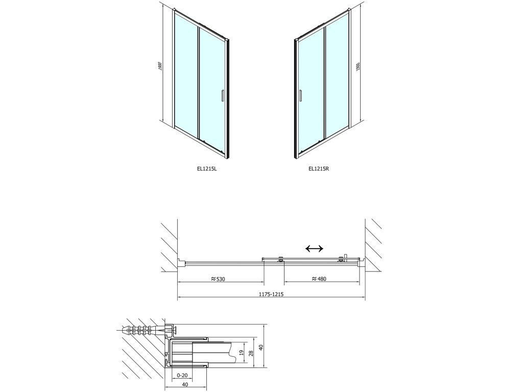 - Instalační rozměr dveří do niky lze díky rozšiřovacímu profilu EL825 zvětšit o 25 mm na každou stranu, celkem o 50 mm