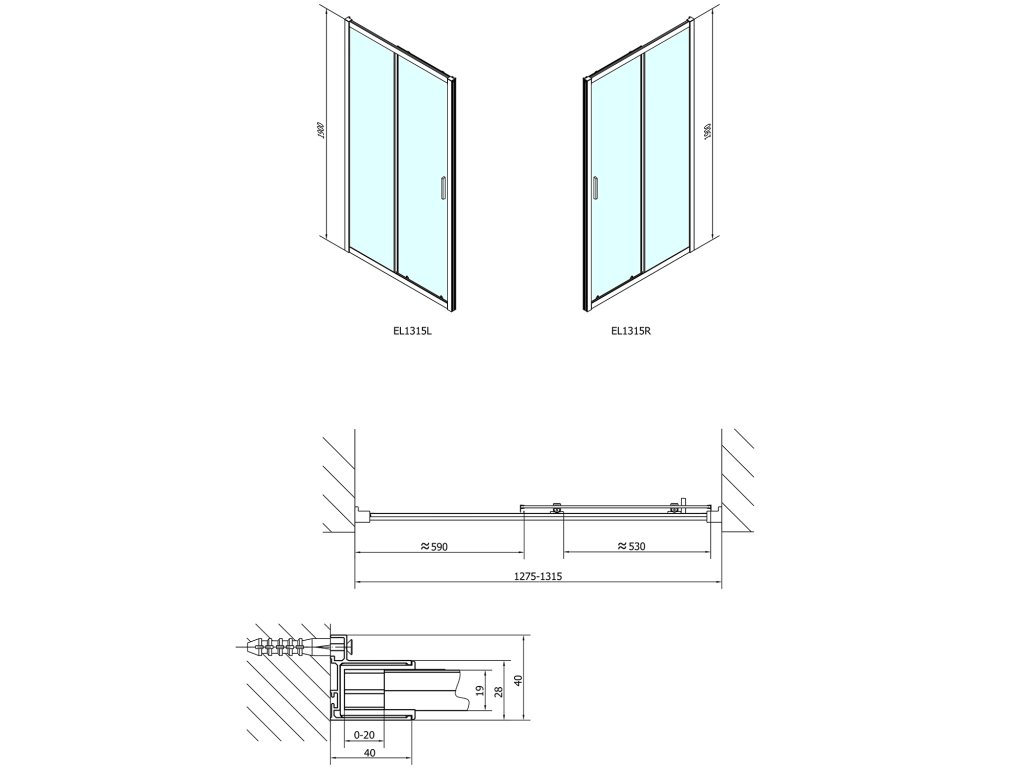 - Instalační rozměr dveří do niky lze díky rozšiřovacímu profilu EL825 zvětšit o 25 mm na každou stranu, celkem o 50 mm