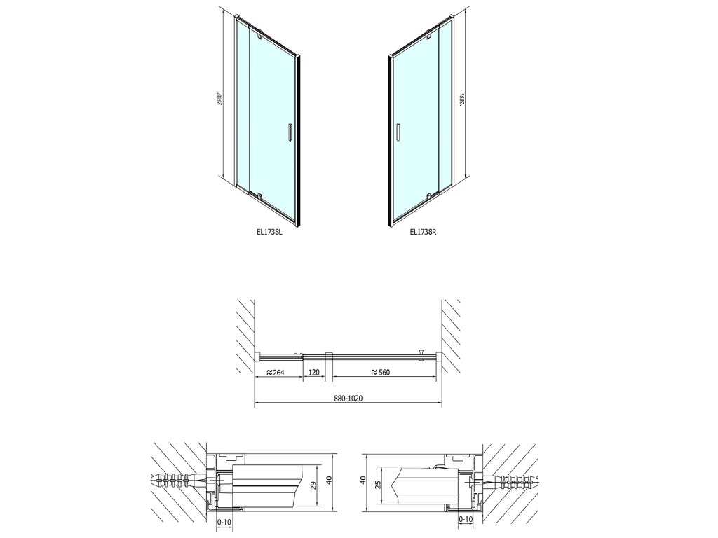 - Boční stěnu lze ke všem typům dveří instalovat z levé i pravé strany, bez ohledu na stranu otevírání dveří