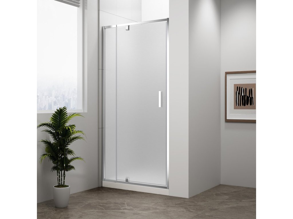 - U pivotových dveří je sklo uchyceno v otočném pivotovém pantu, což je mechanismus s dlouhou životností
