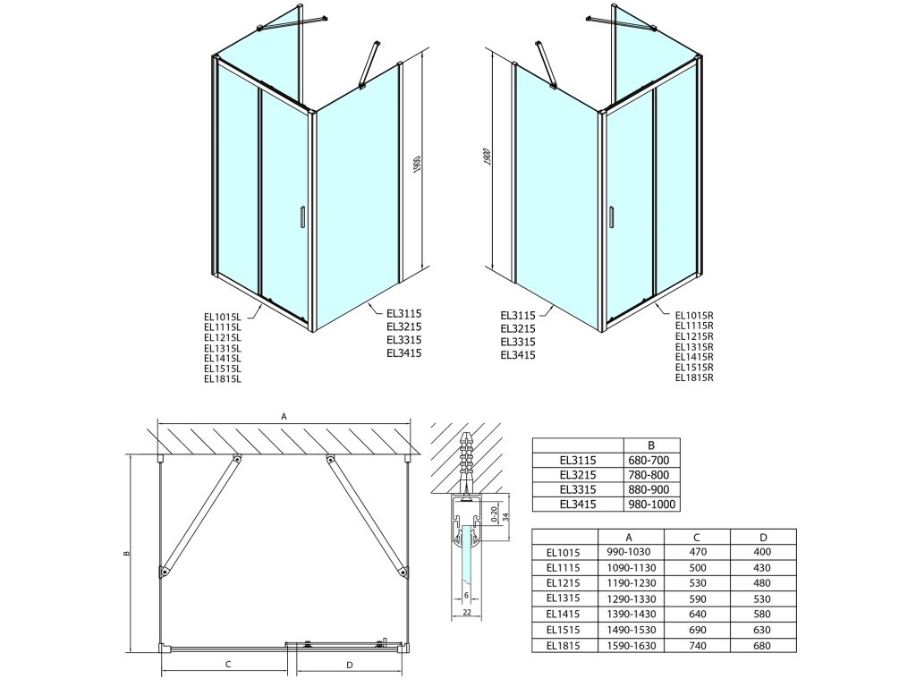 - Instalační rozměr dveří do niky lze díky rozšiřovacímu profilu EL825 zvětšit o 25 mm na každou stranu, celkem o 50 mm