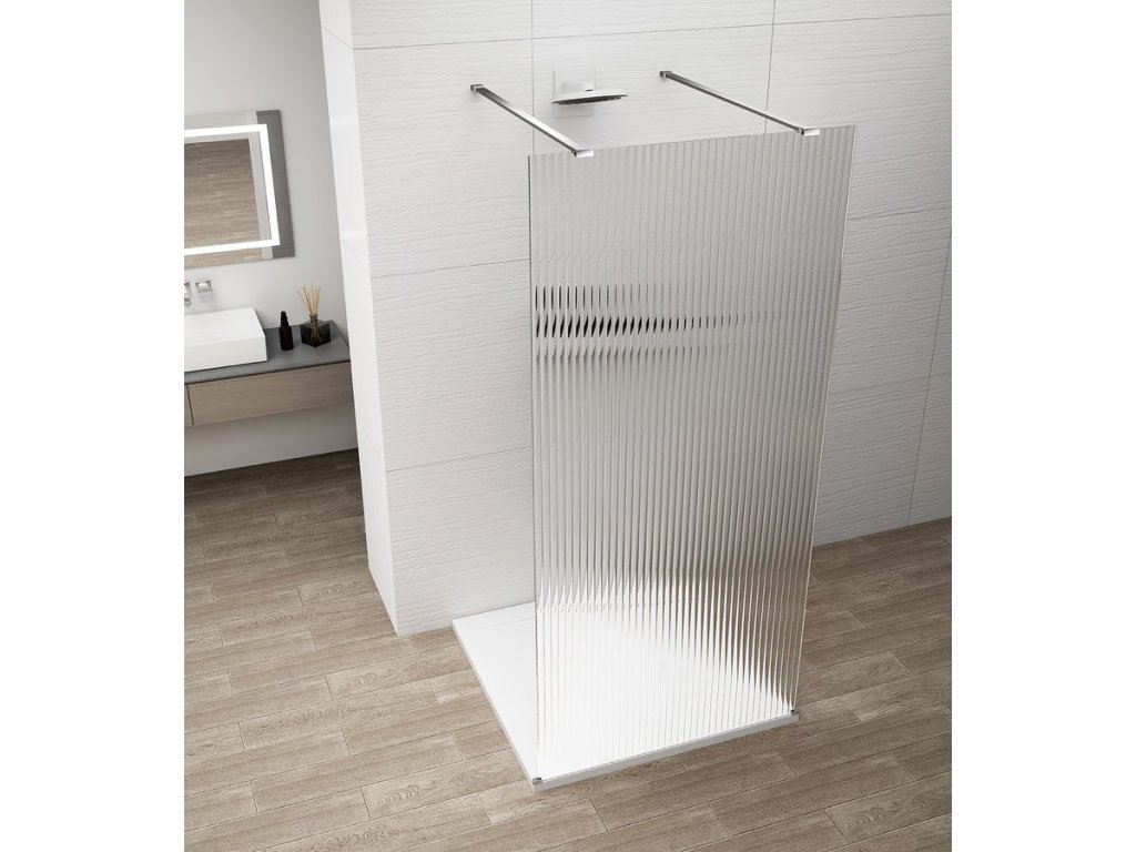 Prémiové dekorativní sklo, které prosvětlí koupelnu podobně jako čiré sklo, ale díky vlnitému reliéfu zároveň poskytne dostatek soukromí pro dokonalý požitek ze sprchování.