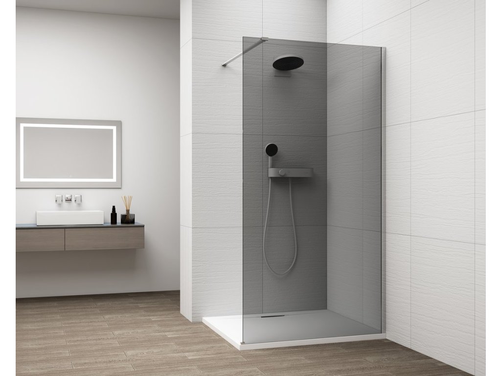 Polysan ESCA CHROME jednodílná sprchová zástěna k instalaci ke stěně, kouřové sklo, 900 mm ES1290-01