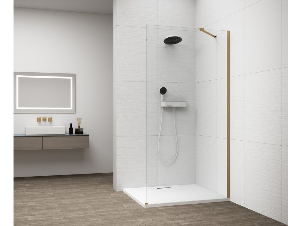 Polysan ESCA GOLD MATT jednodílná sprchová zástěna k instalaci ke stěně, sklo čiré, 1200 mm ES1012-04