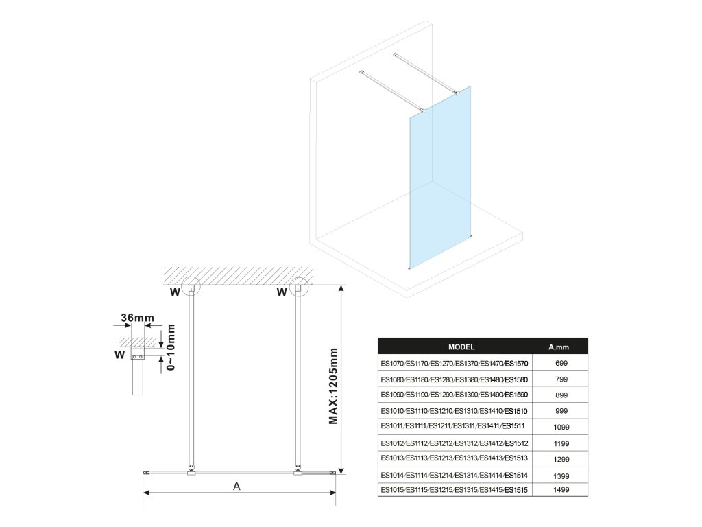 - Zástěny v šířkách 700 až 1500 mm