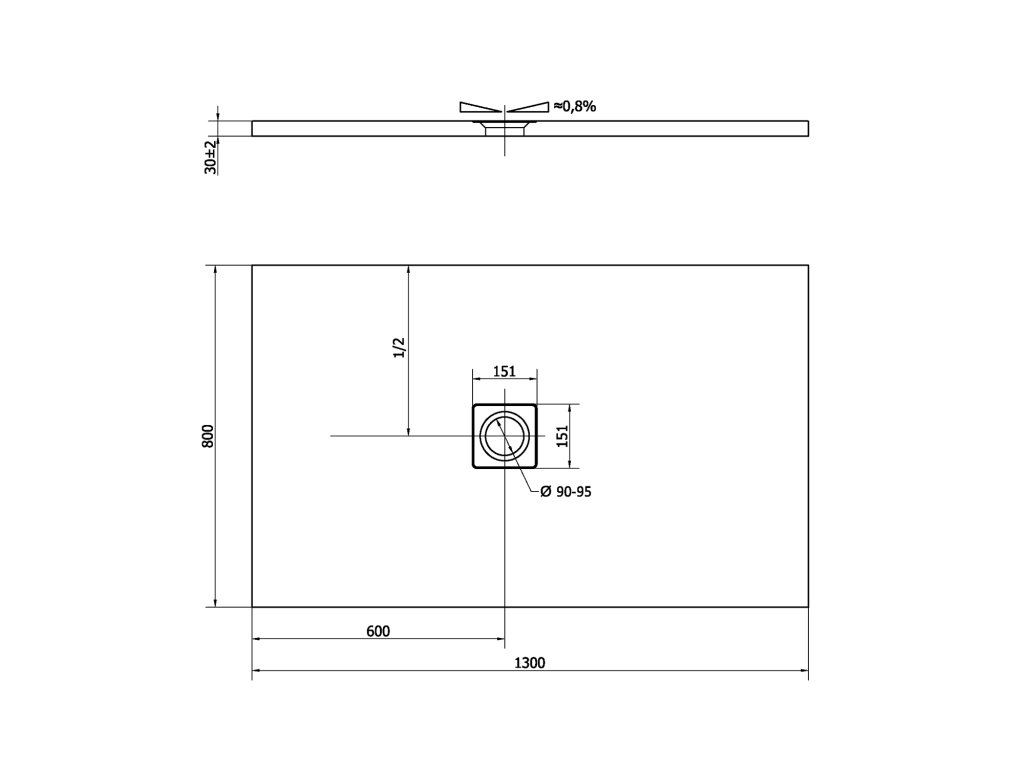 Při zadávání rozměrů je důležité počítat s tolerancí na přesnost řezu. Sprchové podlahy FLEXIA jsou řezány na požadovaný rozměr na strojní formátovací pile s tolerancí ± 2 mm na metr řezu. Následný řez není pohledový.