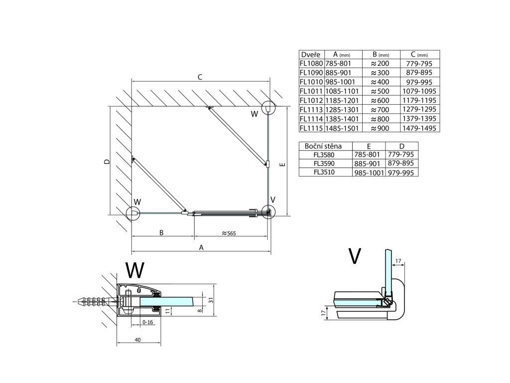 • Snadná montáž pomocí nastavitelného stěnového profilu 0-16 mm