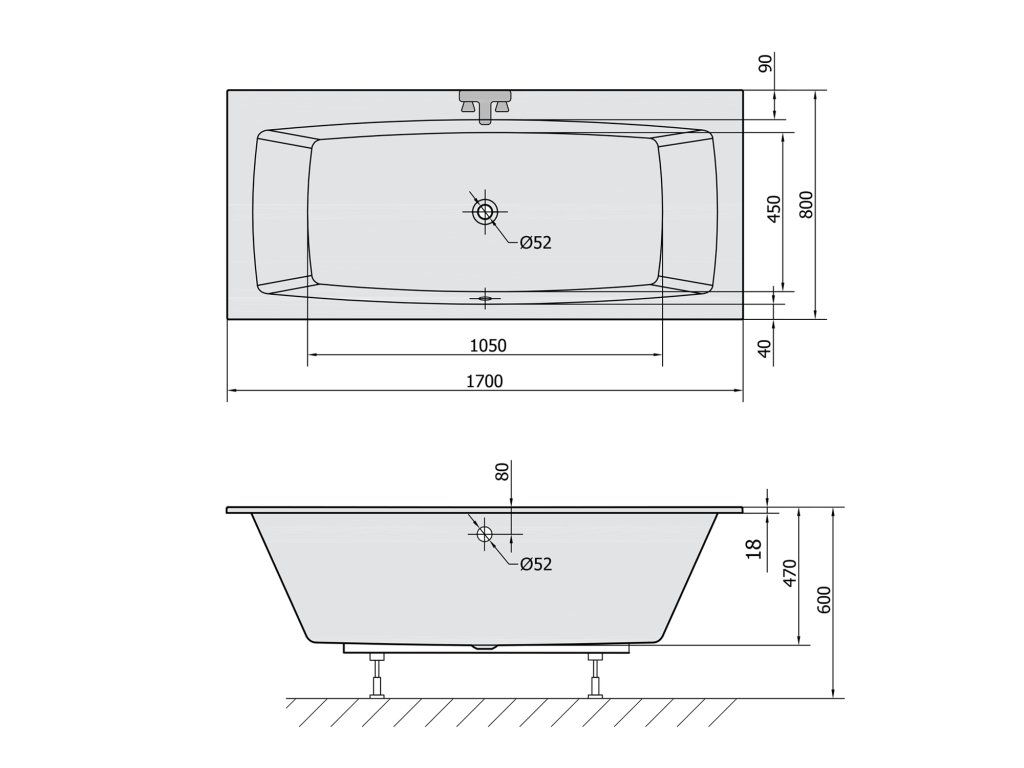 Polysan KVADRA SLIM obdélníková vana 170x80x47cm, bílá 18611S
