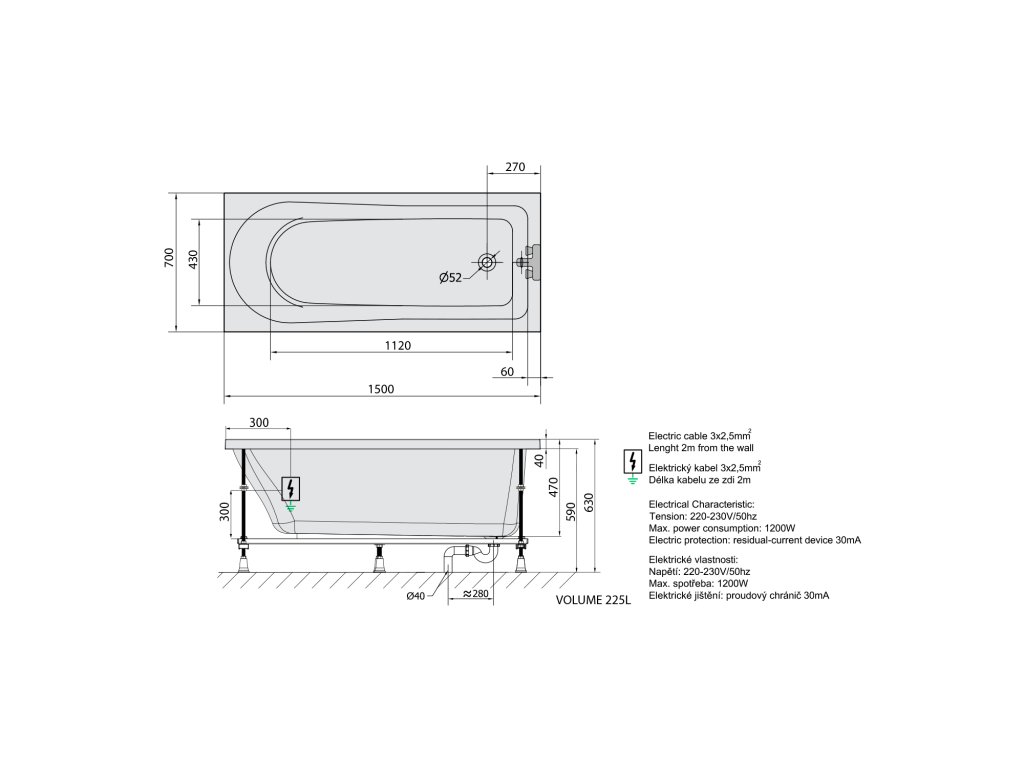 - Na přání lze instalovat COLORTERAPII a napouštění přepadem