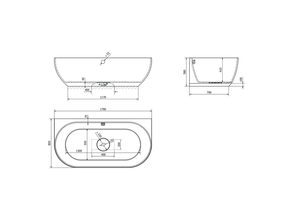 Samostatně stojící vana v prostoru koupelny, která se neobezdívá, nezazdívá ani neobkládá. Díky použitému materiálu má vysokou pevnost, elegantní design a stabilitu. Vana je svým designem určena pouze k instalaci ke stěně (zadní strana není pohledová).