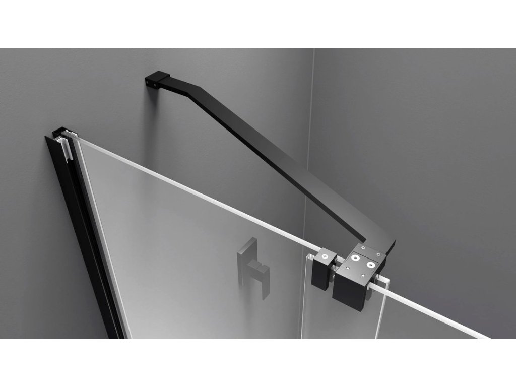 - Dvojdílné sprchové dveře do prostoru (pevná a posuvná část) s hliníkovými profily v chromu nebo matně černé povrchové úpravě