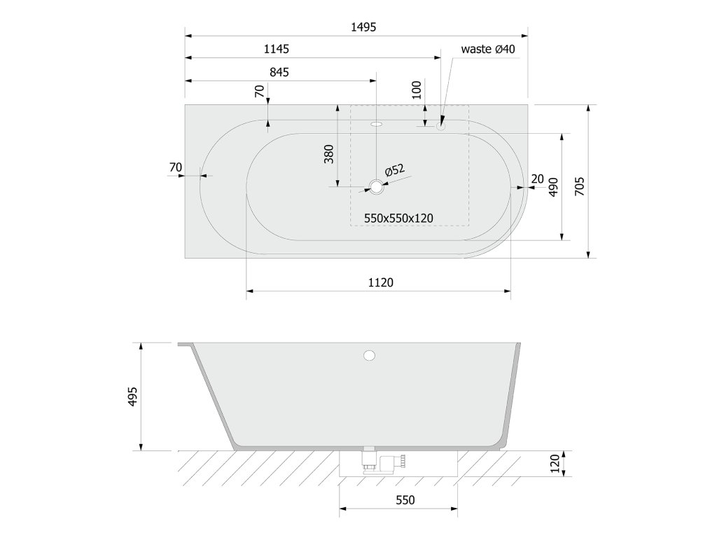 - Sifon je nutno zapustit do podlahy.