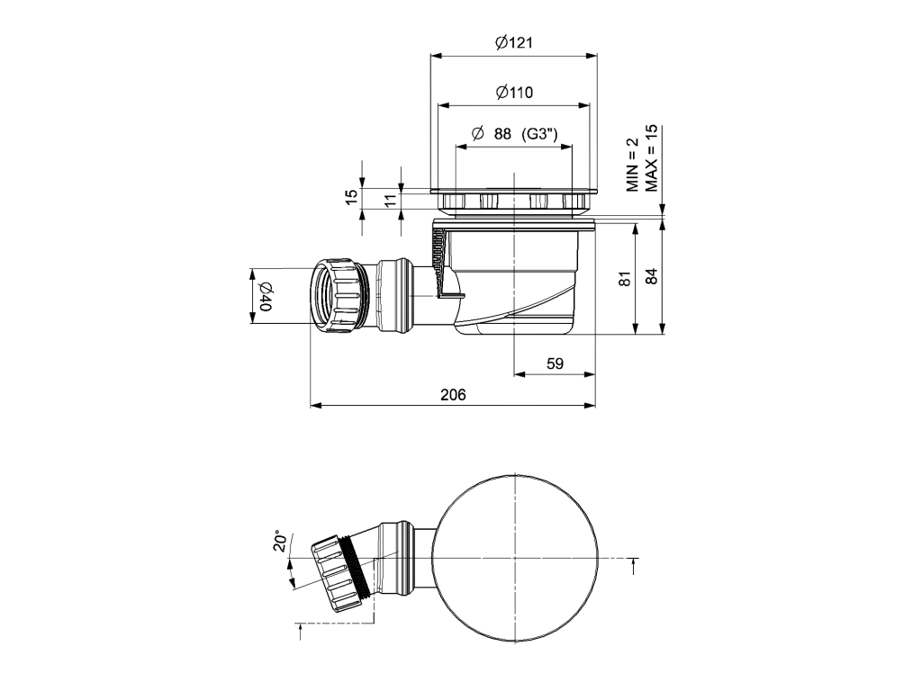 Polysan Vaničkový sifon, průměr 90mm, DN40, krytka měď mat 17911PG