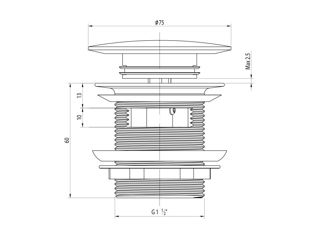 Polysan Vanová výpust 6/4", click-clack, pro vany s integrovaným přepadem, solid surface, bílá mat 72195