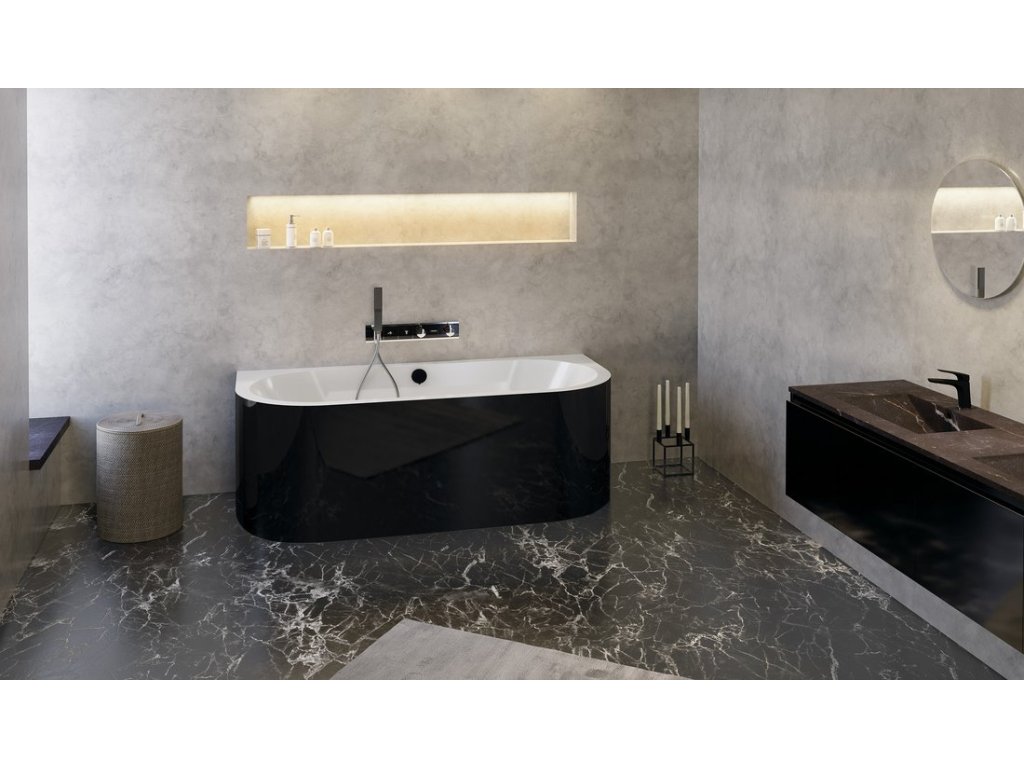 Polysan VIVA D MONOLITH nástěnná stojící vana 180x75x60cm, bílá/černá 89139MB