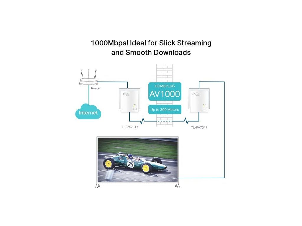 S jedním portem typu gigabitový ethernet umožňuje sada TL-PA7017 KIT uživatelům připojit k internetu zařízení náročná na šířku pásma. Zajišťuje tak plynulý přenos dat včetně streamování videa v ultra HD kvalitě.