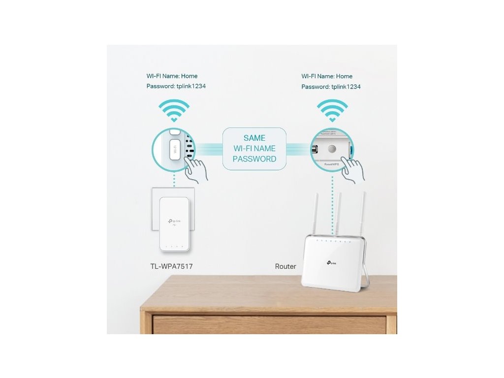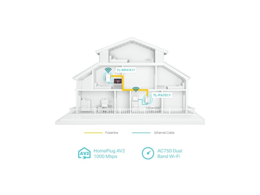 TP-Link TL-WPA7517 KIT je dvojice powerline adaptérů, která vám umožní připojení vašich zařízení k internetu. Je vybavený kromě gigabitového kabelového připojení dvoupásmovou WiFi s celkovou rychlostí až 733 Mbps.