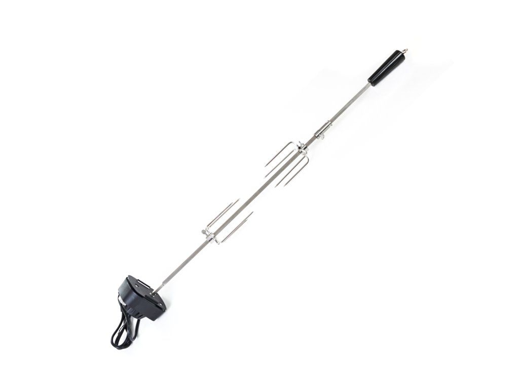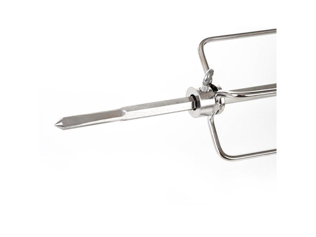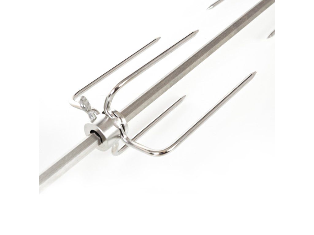 Grilovací jehla s motorem je vyrobena z nerezové oceli a z obou stran je opatřena čtyřmi jehlicemi s aretačními šrouby, díky kterým si můžete jehlice nastavit podle vlastní potřeby.
