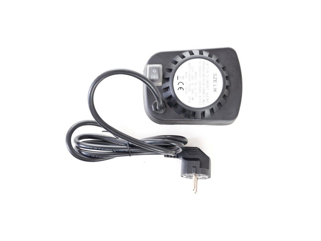 Z jedné strany je jehla opatřena odnímatelným plastovým držadlem, na kterém je praktické očko pro uchycení. Z druhé strany se nachází motorek v plastovém krytu, na kterém je umístěno tlačítko na zapínání / vypínání. Motorek s napětím 230 V jednoduše zapojíte do elektřiny pomocí kabelu v délce cca 125 cm. Motorek s jehlou otáčí rychlostí asi 2 otáčky za minutu, aby se připravovaný pokrm nepřipékal, ale pekl se rovnoměrně.