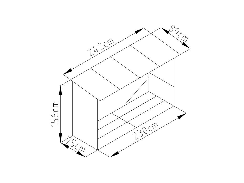 - Rozměry přístřešku bez střechy: 230 x 146 x 75 cm