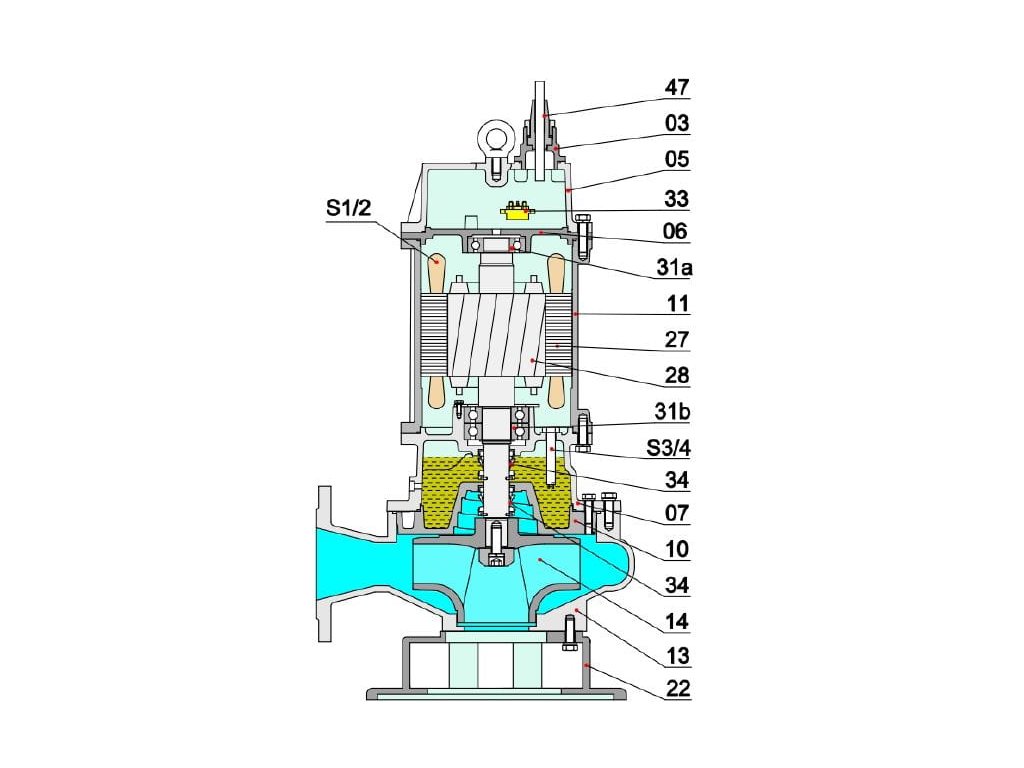 Kalové čerpadlo s oběžným kanálovým kolem. Vhodné pro čerpání odpadních vod obsahujících hrubé nečistoty.