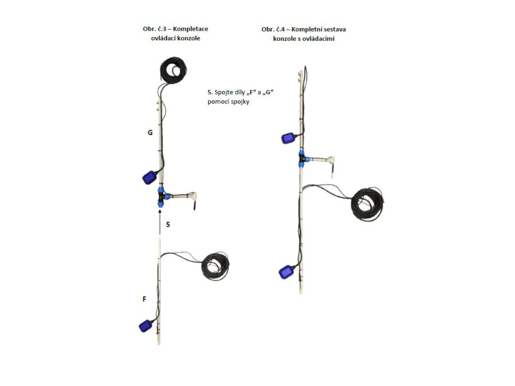- Snímání hladiny pomocí 2 ks sond a 2 ks plovákových spínačů