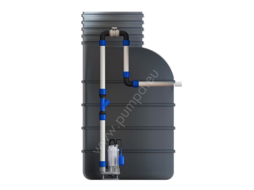 Čerpací jímka BLACK LINE BOX 1 VP PQD je určená pro čerpání splaškových a dešťových vod. Čerpací šachta je vyrobena z materiálu PEHD a je osazena ponorným odstředivým čerpadlem PUMPA blue line PQD s řezacím zařízením, které je řízeno externím plovákovým spínačem.