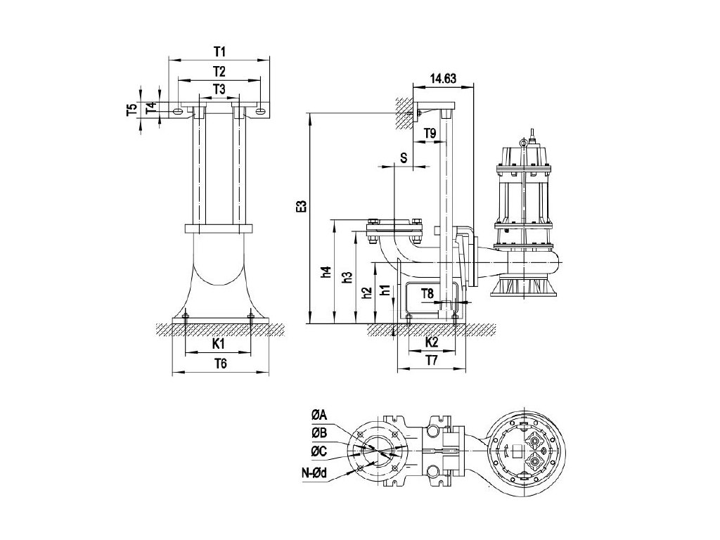 - Spouštěcí zařízení s automatickou spojkou obsahuje patní koleno , přírubu, držák vodících tyčí.