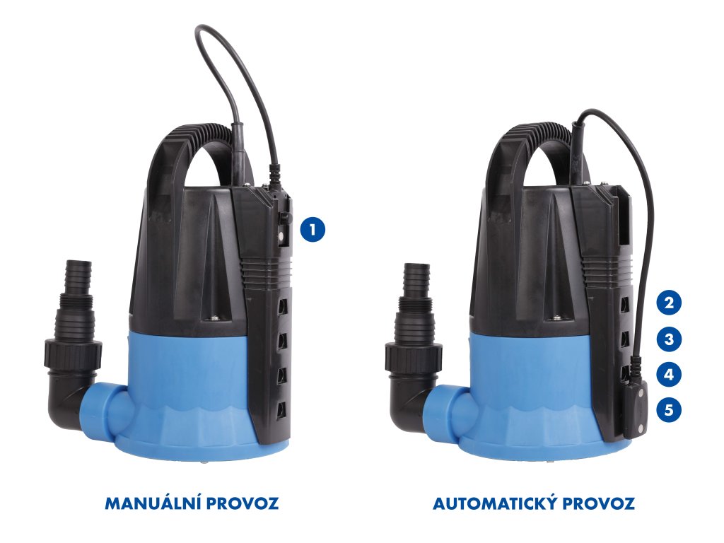 - plovákový spínač s 5 pozicemi (4 automatické, 1 manuální)