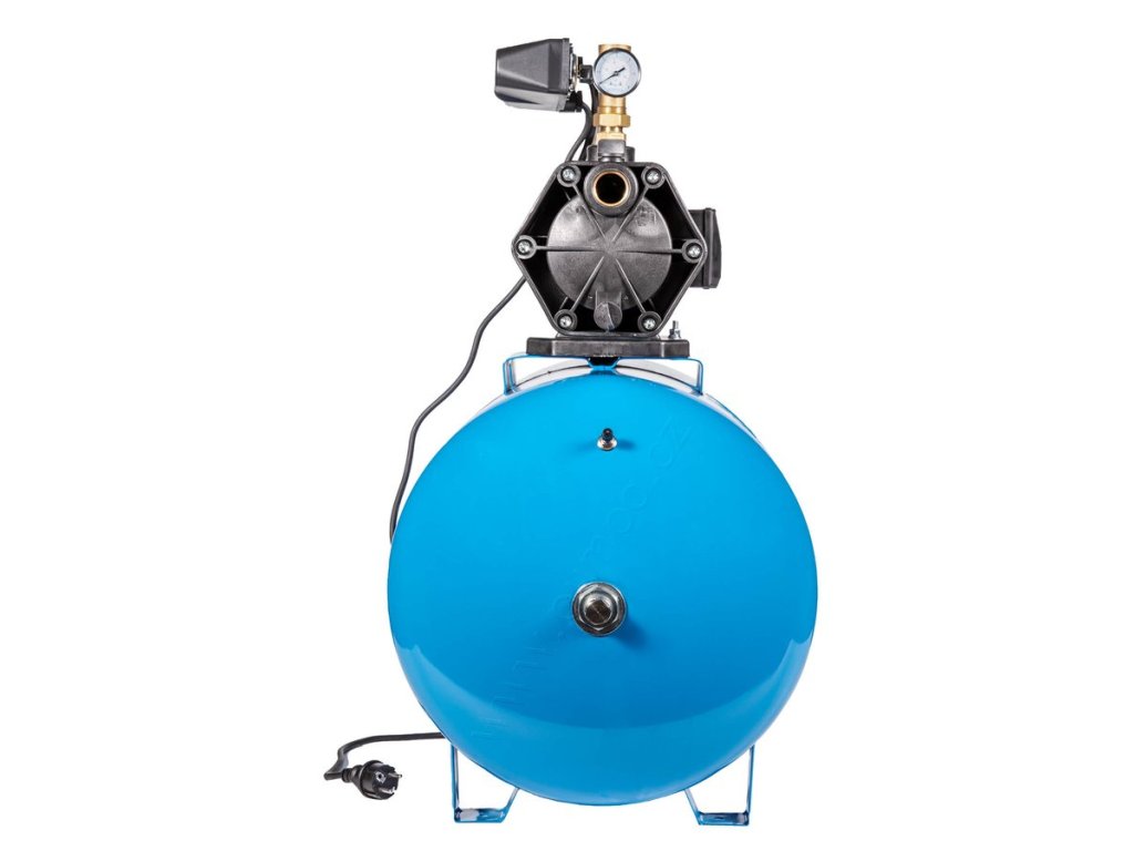 Domácí automatické vodárny s nádobou Pumpa. Pro zásobování užitkovou vodou ze studní, pro použití v rekreačních objektech, na zahradách a pro zavlažování. Maximální schopnost sání 8 m.