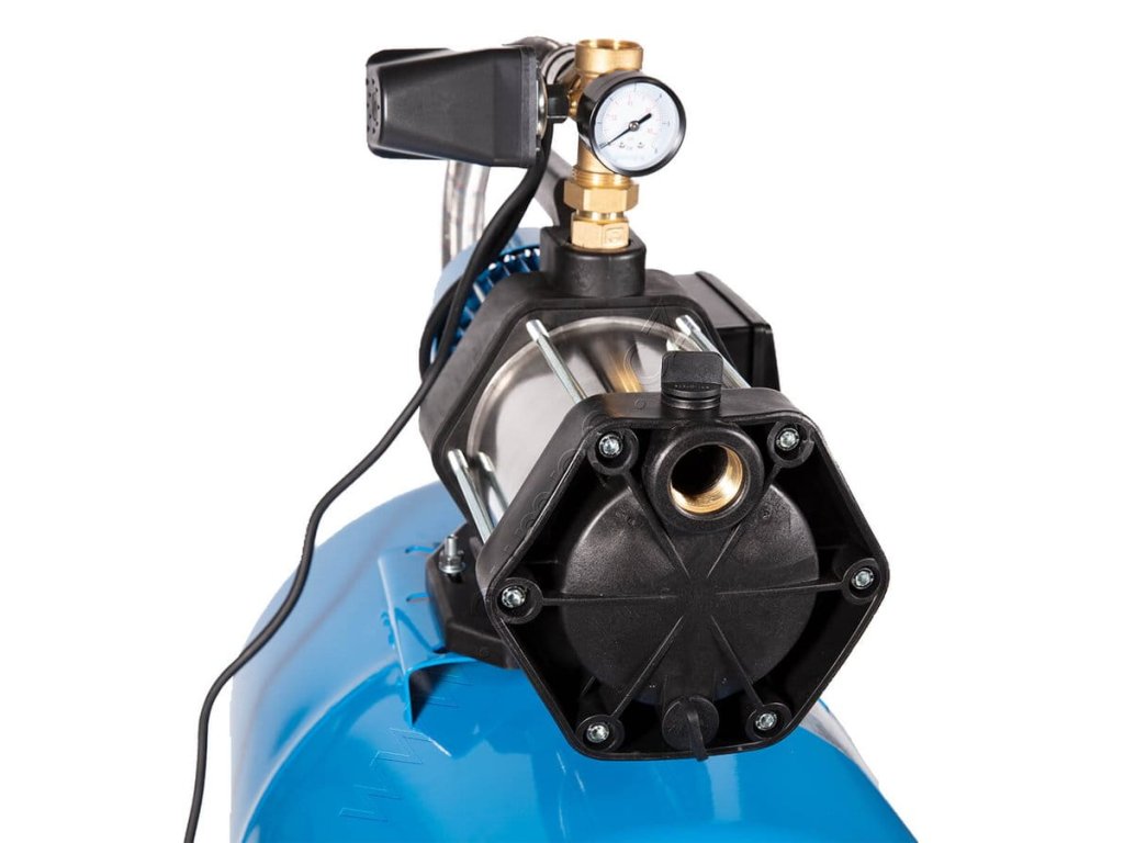 Domácí automatické vodárny s nádobou Pumpa. Pro zásobování užitkovou vodou ze studní, pro použití v rekreačních objektech, na zahradách a pro zavlažování. Maximální schopnost sání 8 m.