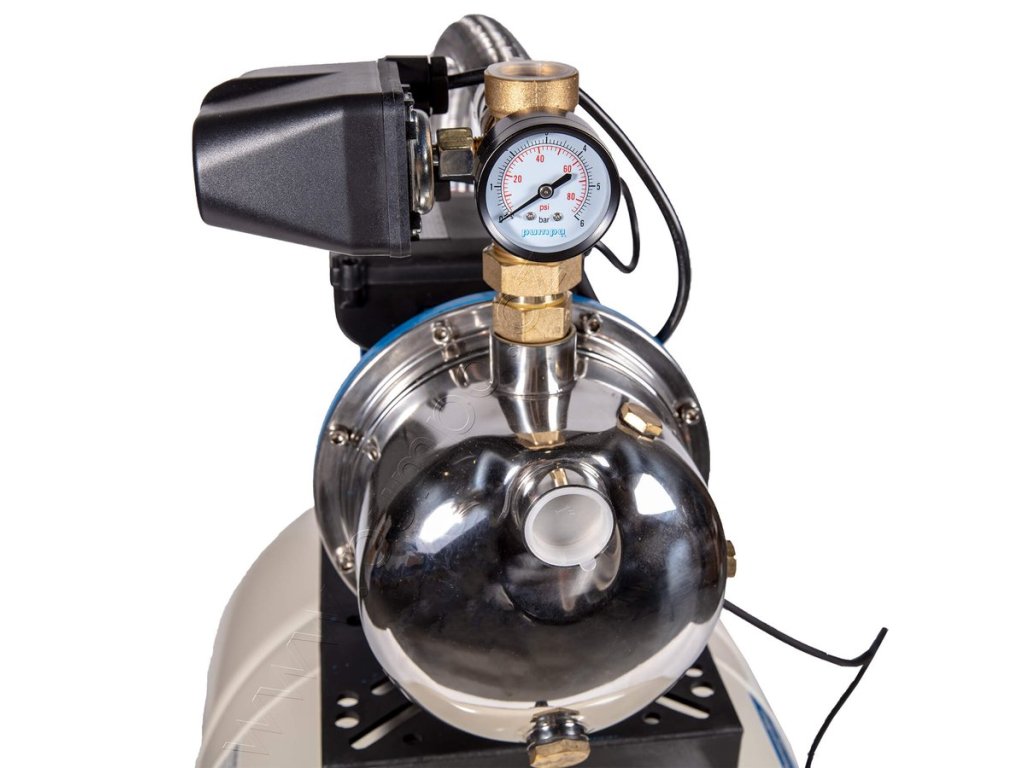 Domácí automatické vodárny s nádobou PWB. Pro zásobování vodou ze studní, pro použití v rekreačních objektech, na zahradách a pro zavlažování. Maximální schopnost sání 8 m.