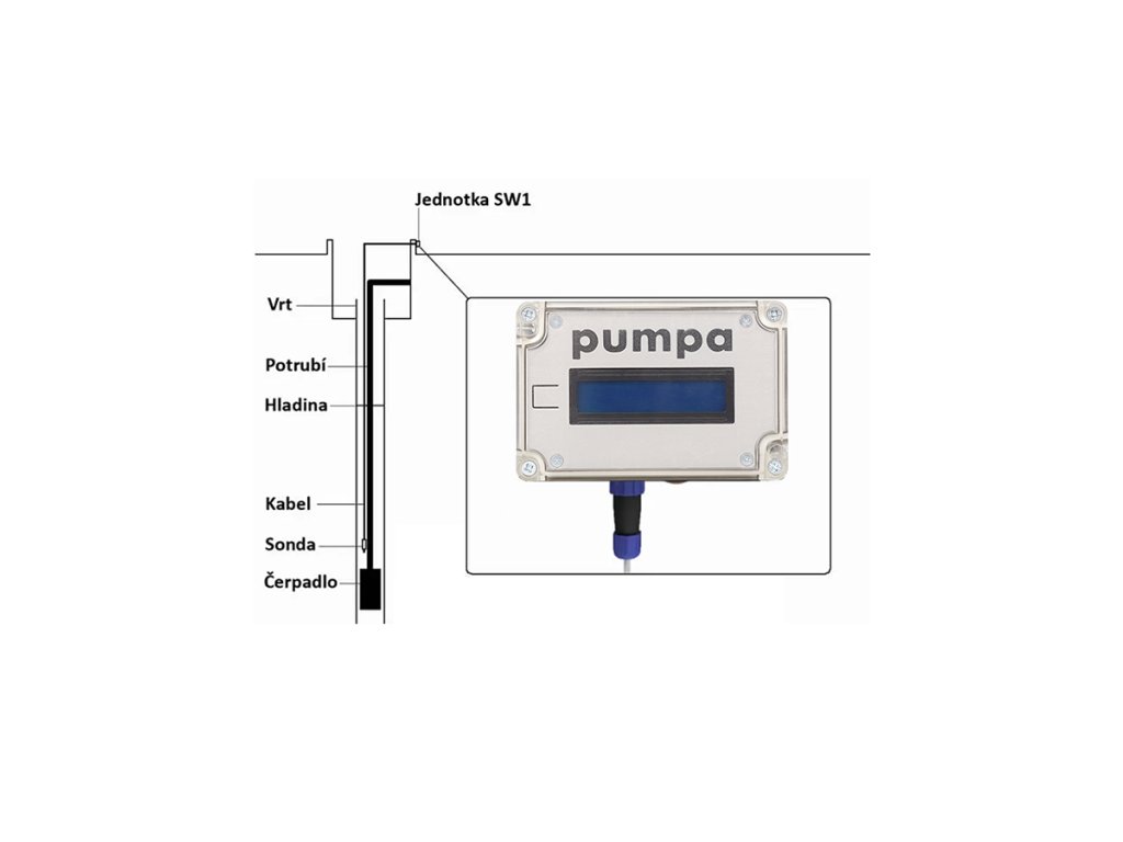 PUMPA Hladinoměr SW1+S2, sonda s kabelem 75m, rozsah měření 0-70m ZB00068866