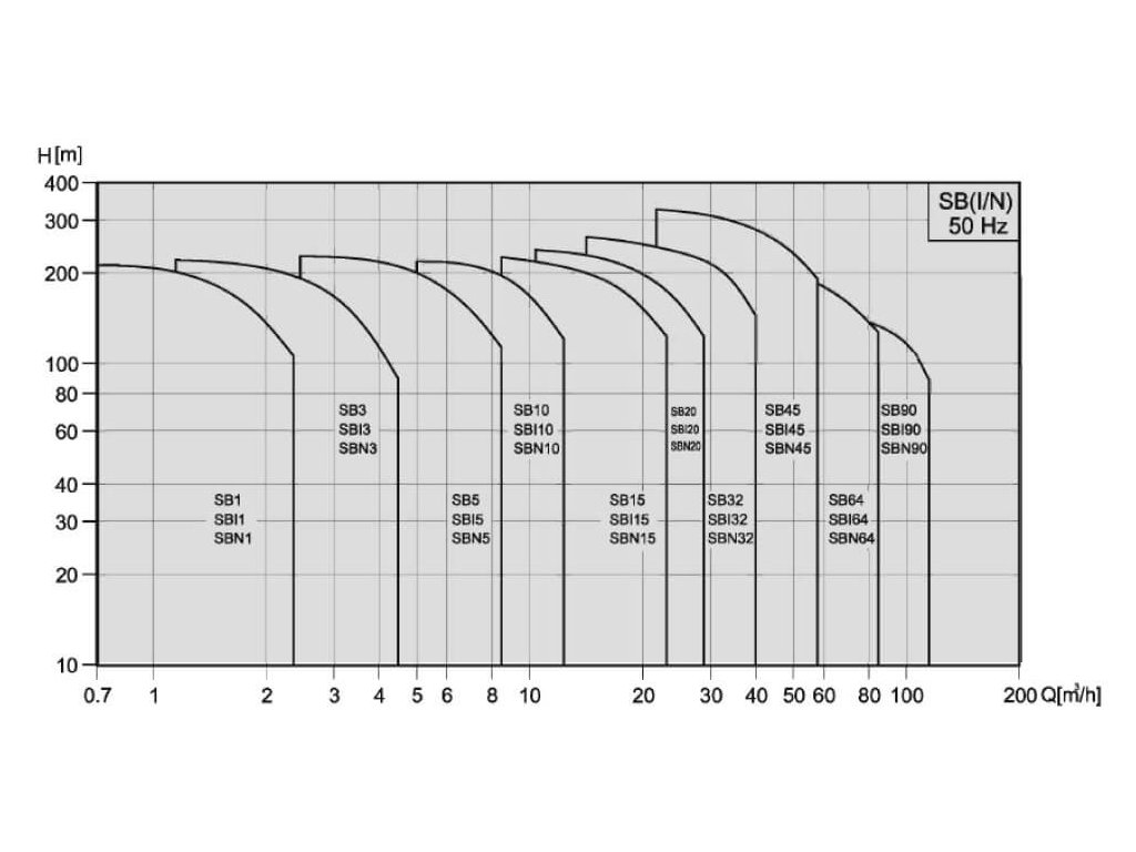- Čerpadla SBIP jsou k dispozici v provedení s různým počtem stupňů a různými výkony, takže zákazník má na výběr řadu modelů pro různé aplikace