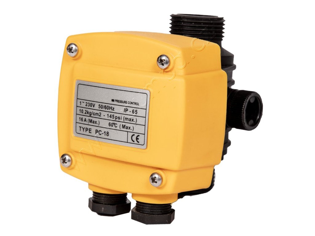 Funkcí elektronického spínače PC-18 je spouštět a zastavit vodní čerpadlo při otevření nebo zavření libovolného kohoutu nebo ventilu ve vodovodním řadu. Produkt nelze použít jako klasický presscontrol, ale slouží pouze pro účely posilování tlaku z řádu.