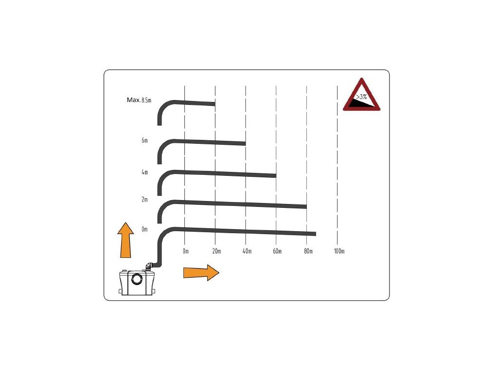 Kompaktní přečerpávací zařízení je určeno pro přečerpávání odpadní vody ze sprchového koutu, umyvadla a/nebo bidetu a splašků z WC pod úrovní kanalizace nebo v souvislosti s rekonstrukcí nebo modernizací stávajících budov, kde nelze vytvořit přirozený spád potrubí.