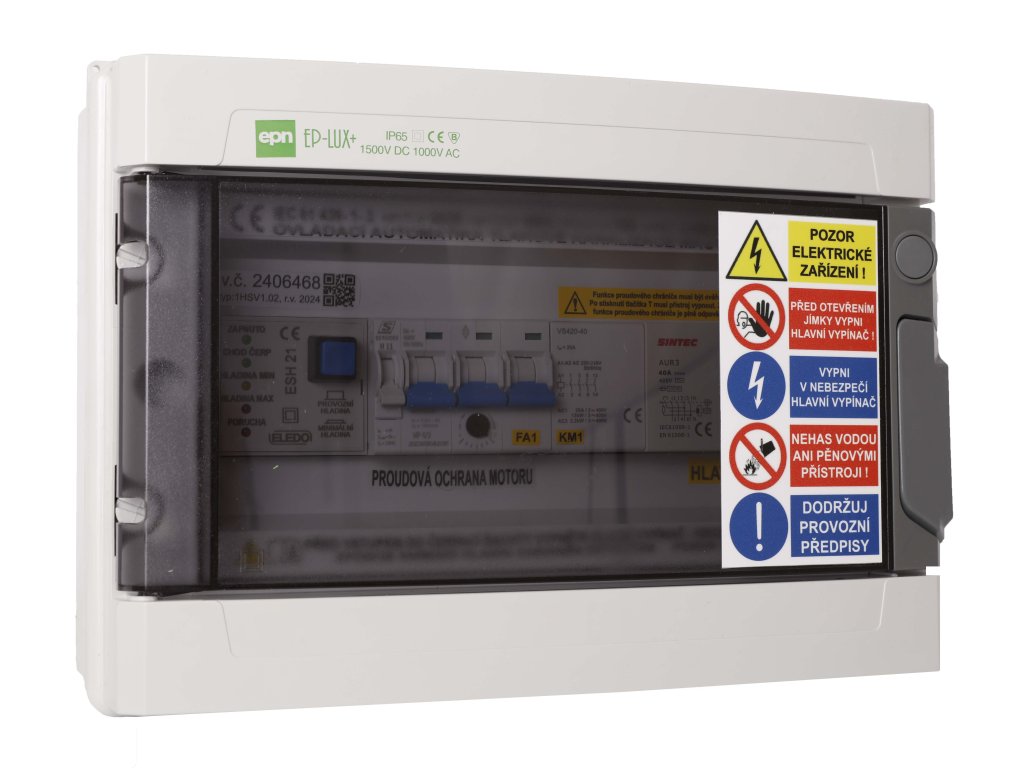 - Zařízení se vyrábí s verzí vestavěné akustické signalizace hladiny max. a poruchy motoru.