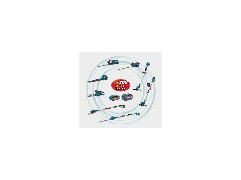 Utahovák spadá do řady AKUMULTISYSTEM 20V. Všechno zahradní náčiní a nářadí, které patří do tohoto programu, se dá napájet stejnou baterií.