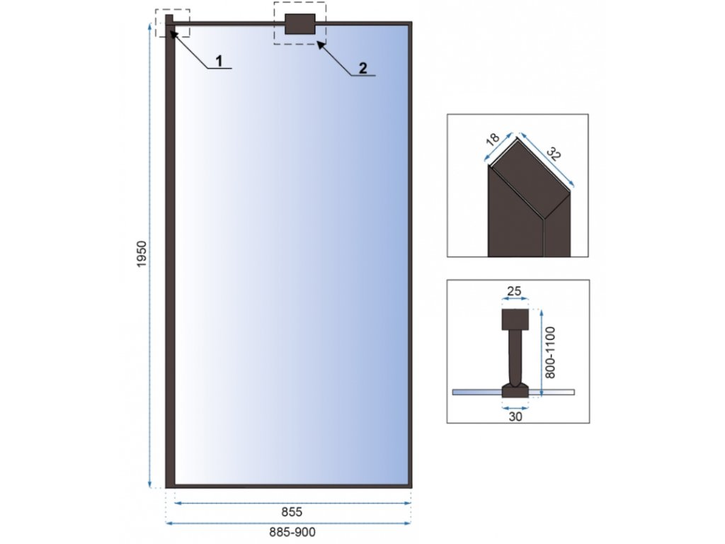 Tabulka rozměrů sprchového koutu Aero Walk In