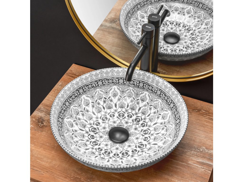 Představujeme Vám moderní, designové a jedinečné umyvadlo s krásným zdobením. Vnese do Vaší koupelny eleganci. Je vyrobeno z vysoce kvalitní sanitární keramiky. Díky speciální výrobě se snadno čistí a tím je údržba opravdu jednoduchá.