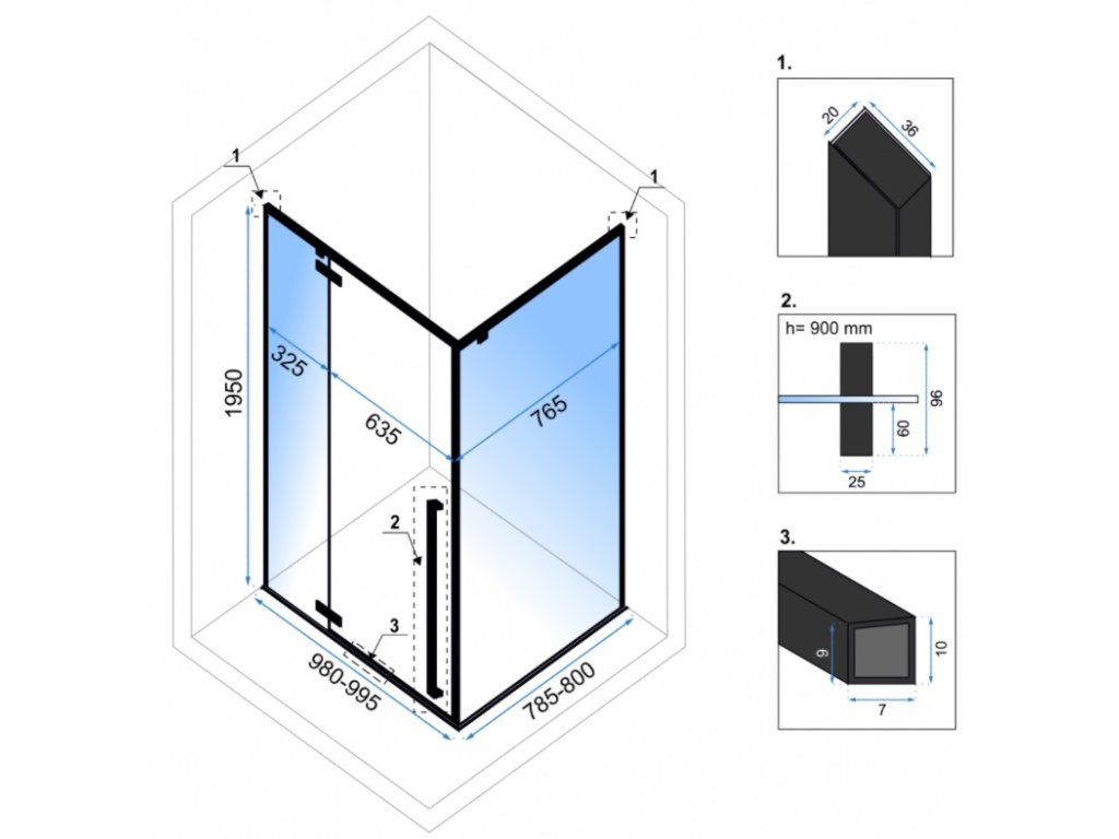 Specifikace sprchového koutu Fargo 100x80x195