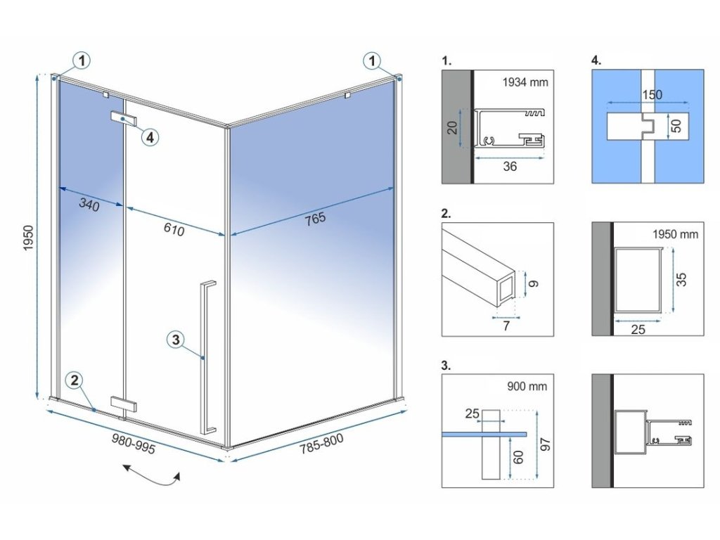 Specifikace sprchového koutu Fargo 100x80x195