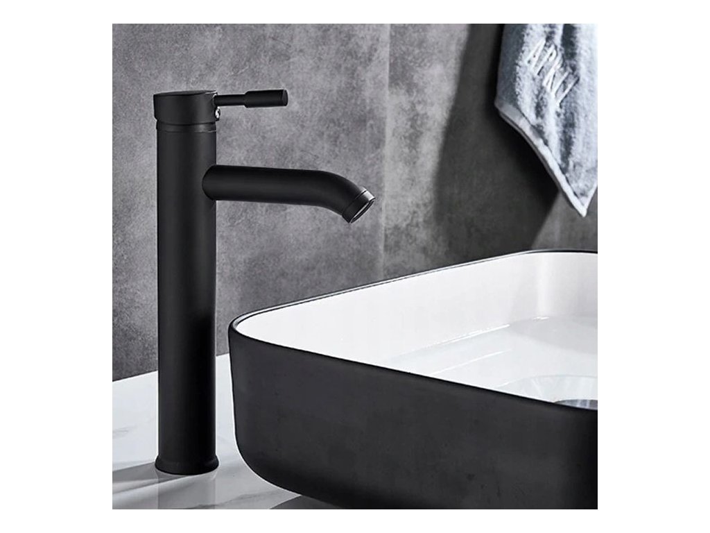 Umyvadlová baterie z mosazi nejvyšší kvality. Tento materiál zaručuje spolehlivost a bezproblémový provoz produktu po mnoho let. Krásný tvar baterie dokonale ladí s jakýmkoli dekorem koupelny. Designová a moderní baterie na desku k umyvadlu nebo k dřezu. Je vyrobena z mosazi pokrytou krásnou matnou černou barvou. Díky speciálnímu způsobu výroby je velice odolná a snadno se čistí.
