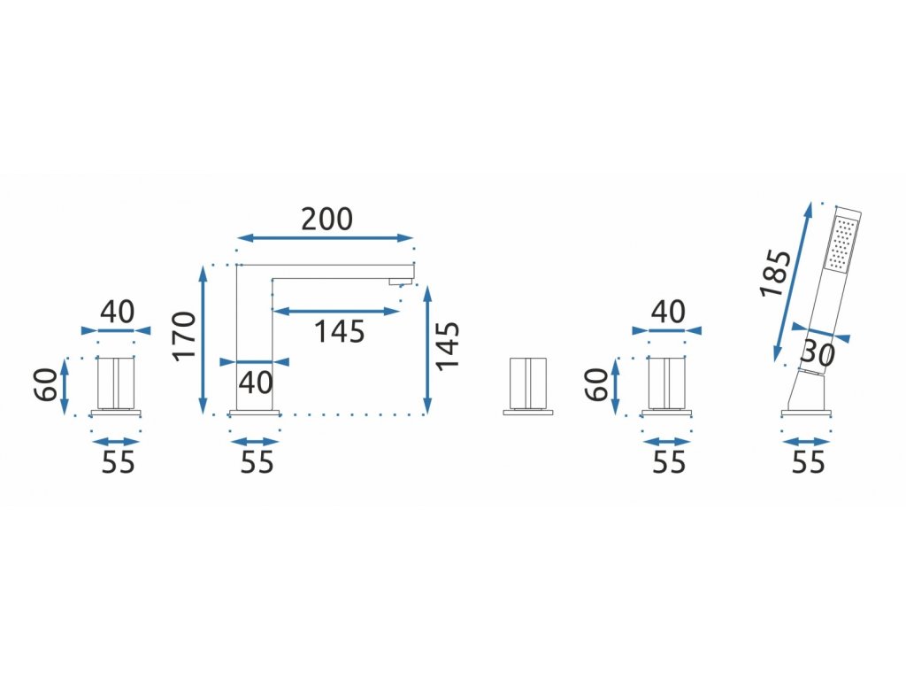Rea Icon 5-otvorový vanový komplet, black, REA-B3622