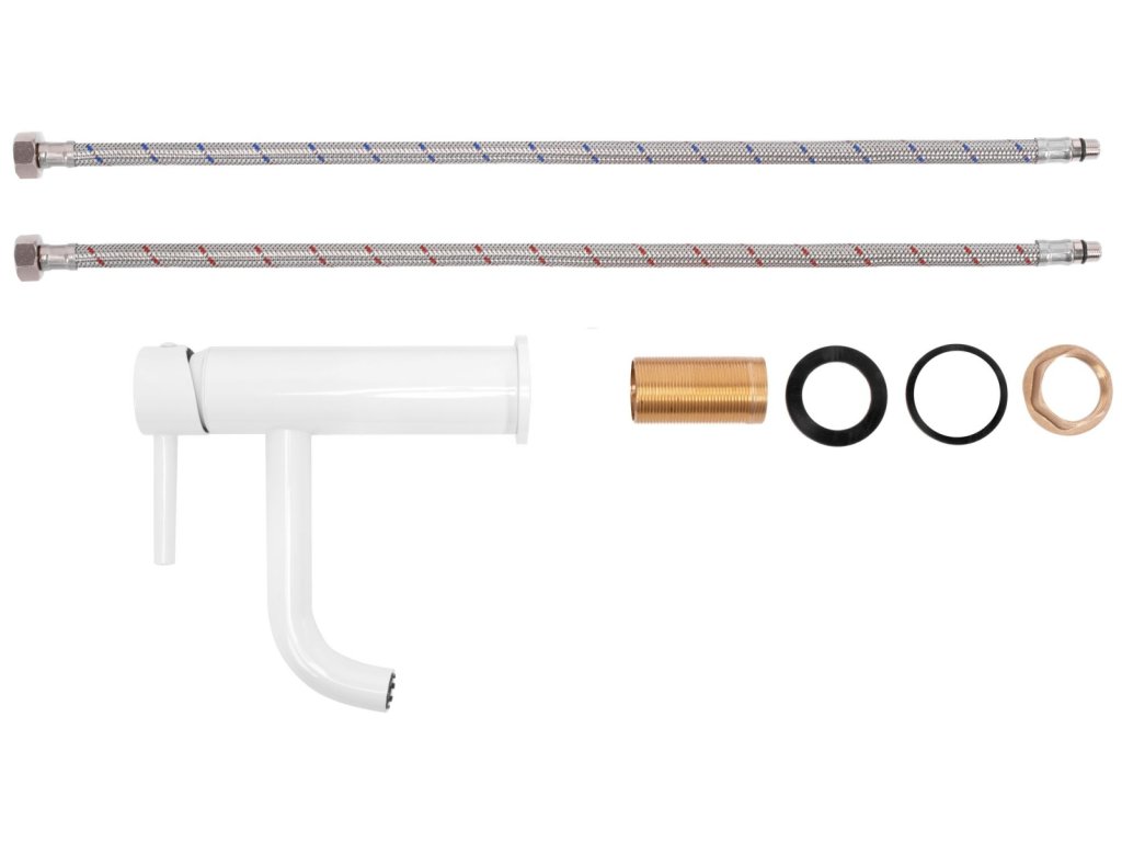 Umyvadlová baterie z mosazi nejvyšší kvality. Tento materiál zaručuje spolehlivost a bezproblémový provoz produktu po mnoho let. Krásný tvar kohoutku dokonale ladí s jakýmkoli dekorem koupelny. Designová a moderní baterie na desku k umyvadlu nebo k dřezu. Je vyrobena z mosazi pokrytou krásnou bílou barvou. Díky speciálnímu způsobu výroby je velice odolná a snadno se čistí.